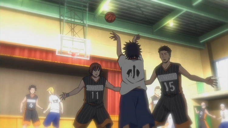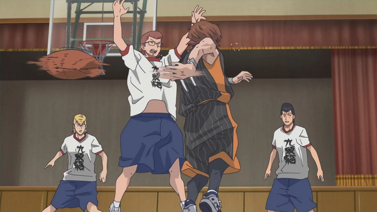 Tomo further states that she is a massive fan of Shinmaruko High's ace Tokiwa. Meanwhile, at the ongoing practice match, Shinmaruko High continues to show their dominance. Chiba then receives an efficient pass from Tokiwa and then goes for one of his signature ferocious dunks. Momoharu tries to stop him, and Chiba, unfazed by him, viciously dunks. The referee then calls out for a defensive foul. Chiba, while attempting to make the free throw, Yasuhara complains to his teammates that why does Chiba get a chance to shoot. Momoharu informs Yasuhara that he caused that foul and further explained that if Chiba had missed that dunk, he would have gotten a chance to make two free throws, and since he scored, it is one free throw.